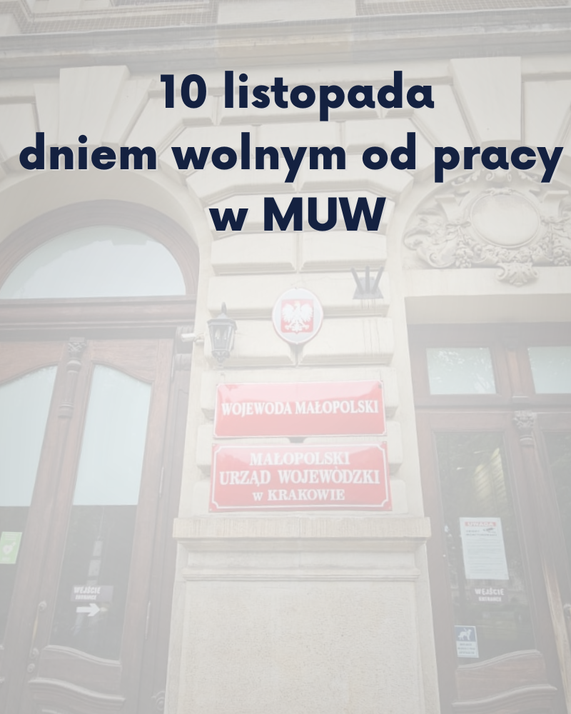Tego dnia Małopolski Urząd Wojewódzki w Krakowie będzie nieczynny.