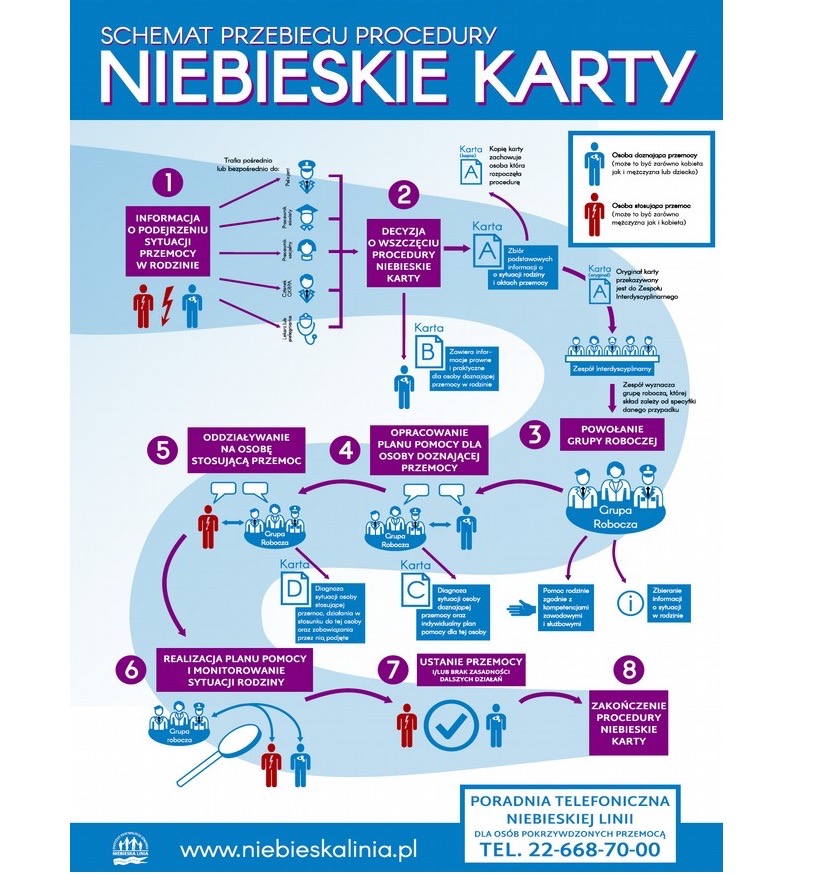 Pokrzywdzona została objęta procedurą Niebieska Karta. W jej ramach uzyska pomoc specjalistów z Zespołu Interdyscyplinarnego ds. Przeciwdziałania Przemocy w Rodzinie. W ramach tej samej procedury 28-latek został objęty nadzorem dzielnicowego.