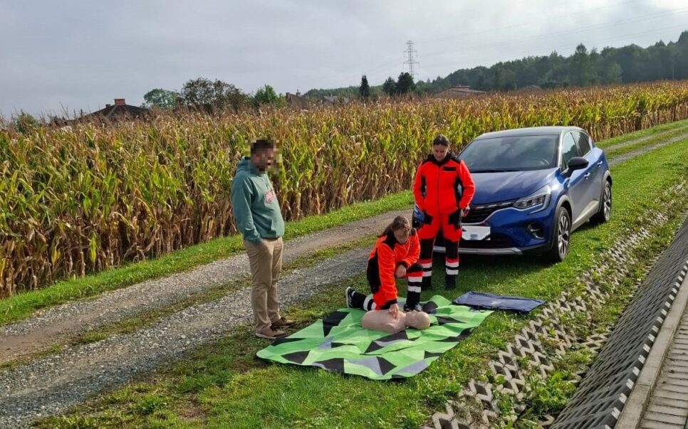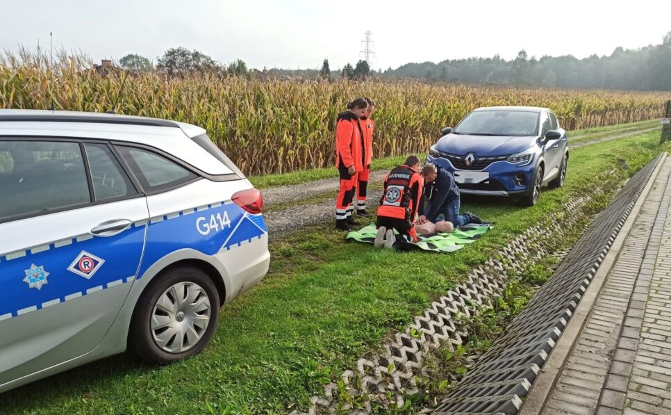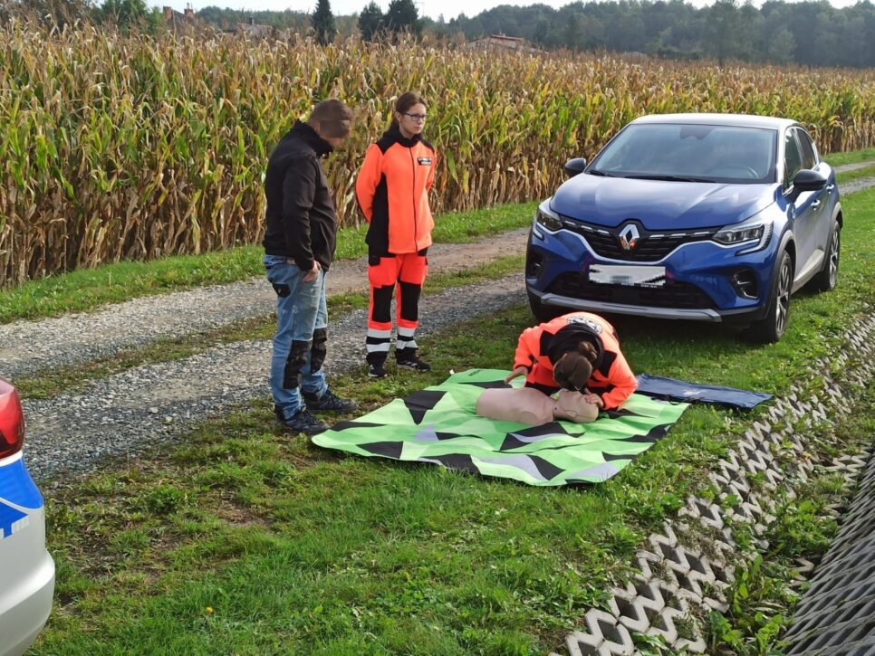 Akcję przeprowadzono w środę (18.09.2024) w Jawiszowicach na ulicy Przecznej. Policjanci zwracali szczególną uwagę na kierowców popełniających wykroczenia, w tym w szczególności przekraczających dozwoloną prędkość. W przypadku ujawnienia wykroczenia oprócz pouczenia i omówienia konsekwencji, proponowali możliwość wzięcia udziału w lekcji z zakresu reagowania na zdarzenie drogowe oraz udzielania pierwszej pomocy. Gdy kierowca wyraził zgodę uczennice technikum logistycznego o profilu ratownictwo medyczne oraz Krzysztof Klimczak nauczyciel Centrum Szkolenia Ratownictwa, przy wykorzystaniu fantoma, uczyli kierujących prawidłowego prowadzenia resuscytacji krążeniowo – oddechowej. Kierowcy dowiedzieli się jak zabezpieczyć miejsce wypadku, jak wyciągać rannych z pojazdów, jak ich ułożyć, jak tamować krwawienia.
