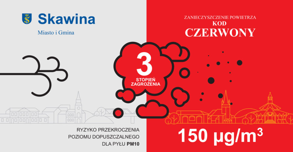Wydano powiadomienie o możliwości przekroczenia średniodobowego poziomu alarmowego dla pyłu zawieszonego PM10 z powodu zwiększonej emisji i niekorzystnych warunków meteorologicznych. Ostrzeżenie obowiązuje w dniu 21 stycznia 2026 r.