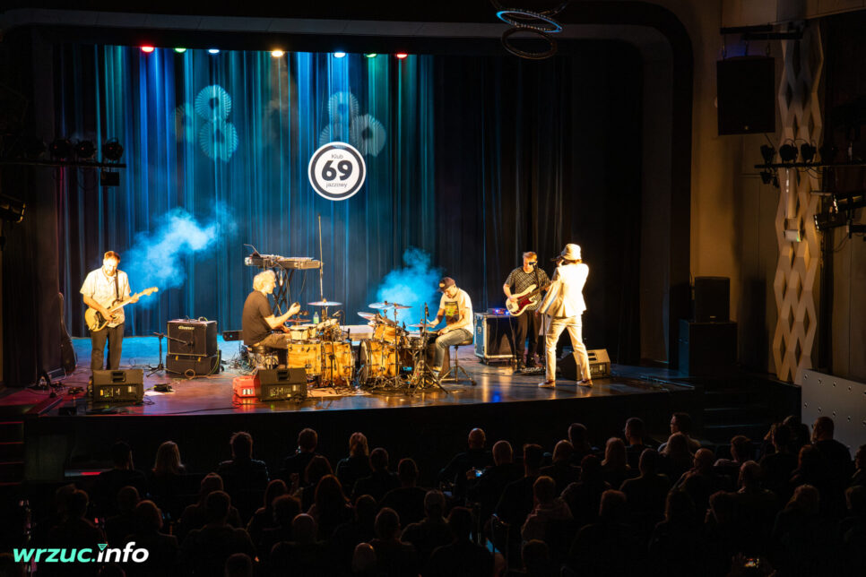 Trzon brzmienia tworzył podwójny zestaw perkusyjny – Macio Moretti i Bartek Kapsa zaprezentowali dynamiczny, precyzyjny dialog rytmiczny, który w połączeniu z basem i drugim wokalem Jaśka Wrońskiego budował napięcie i puls całego koncertu. Na tym tle wokal Łukasza Jędrzejczaka mógł swobodnie balansować między ekspresją a eksperymentem. Artysta operował również elektroniką, dodając kompozycjom dodatkowych warstw i energii.