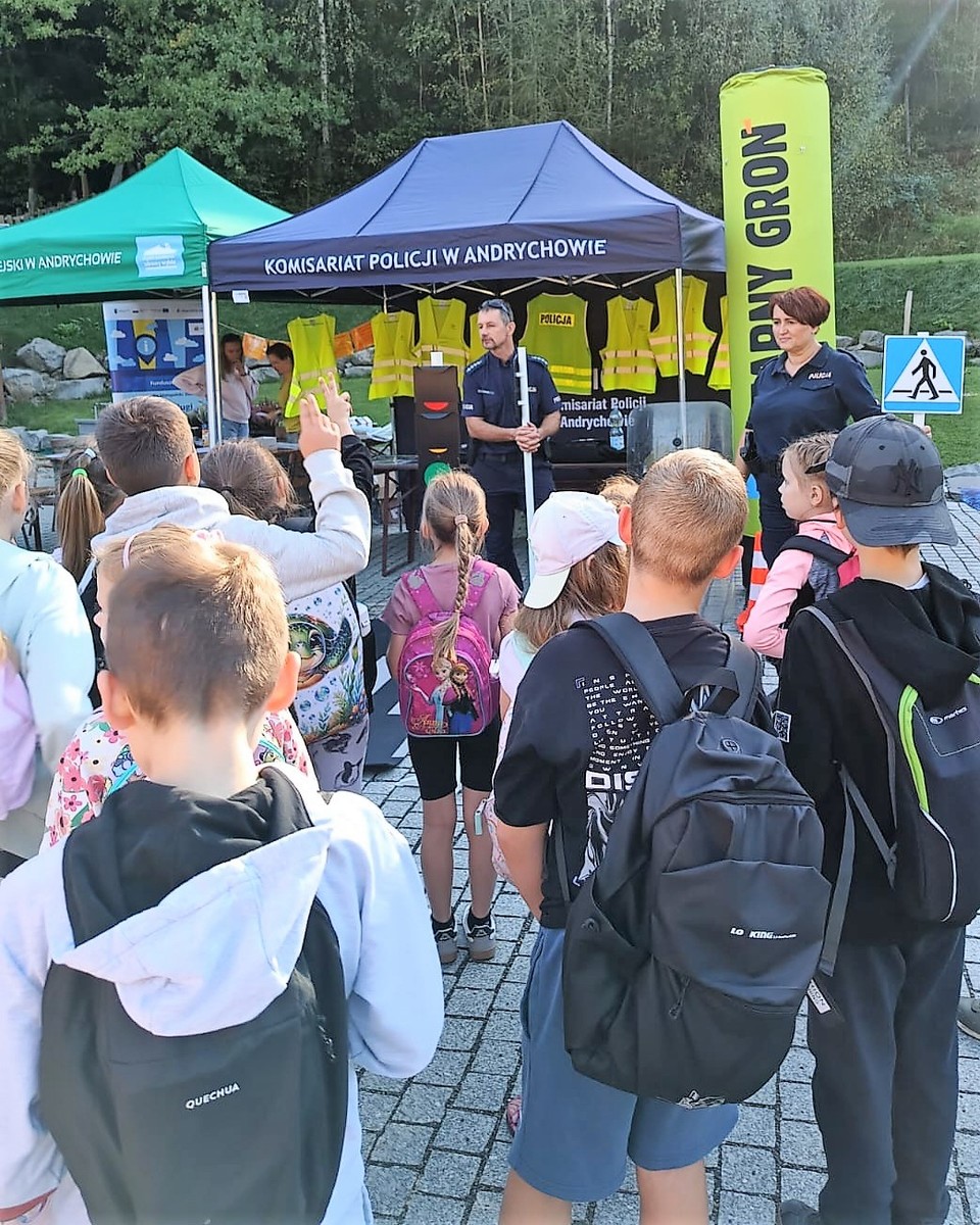 W akcji uczestniczyli także policjanci z Komendy Powiatowej Policji w Wadowicach oraz Komisariatu Policji w Andrychowie. Prowadzili stanowisko poświęcone szeroko rozumianemu bezpieczeństwu, rozmawiając z dziećmi m.in. o zasadach poruszania się w drodze do i ze szkoły oraz o zachowaniu ostrożności w kontaktach z nieznajomymi.