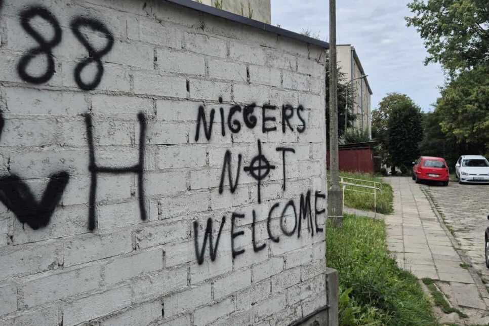 Akt wandalizmu i rasizmu w Andrychowie. Na wiacie śmietnikowej oraz na elewacji bloków pojawiają się coraz częściej wulgarne, rasistowskie treści. Świadkowie mówią o anglojęzycznych hasłach wprost wykluczających cudzoziemców, m.in. napisie w formie „niggers not welcome”.
