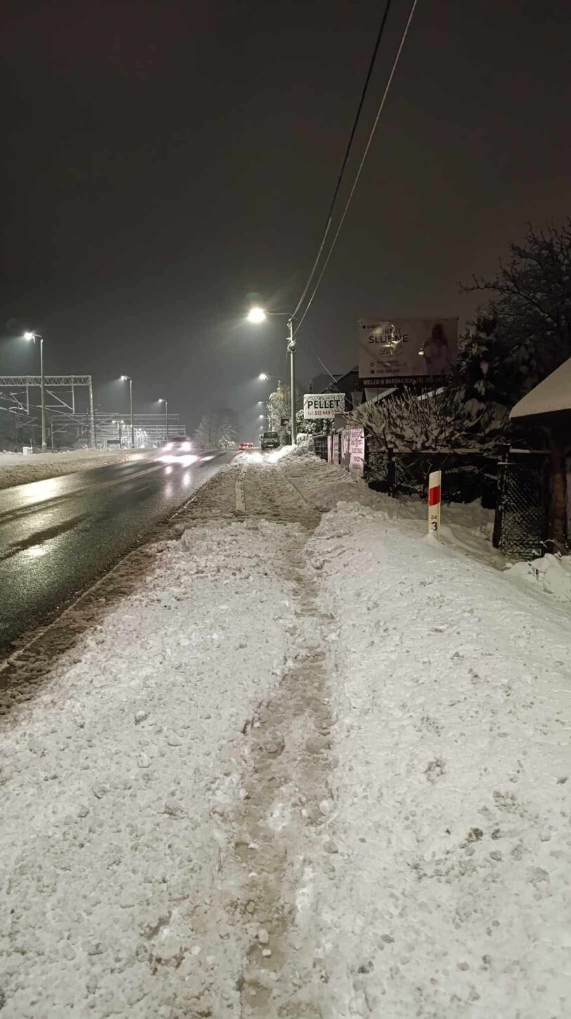 Uciążliwości odczuwają także piesi. Cały chodnik łączący Andrychów z Inwałdem został zasypany grubą warstwą śniegu. W wielu miejscach przejście jest wręcz niemożliwe, a mieszkańcy skarżą się, że pokonanie tej trasy wymaga dziś sporo determinacji. Zdjęcia wysłał zdenerwowany czytelnik