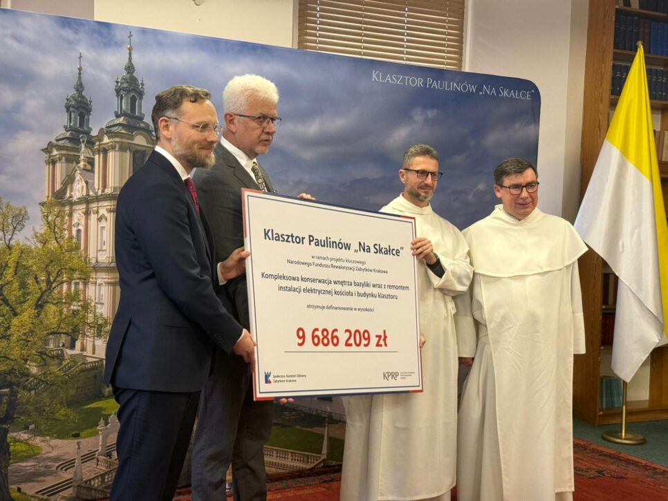 W klasztorze Paulinów na krakowskiej Skałce odbyła się uroczystość przekazania promesy na realizację w latach 2025–2028 projektu kluczowego Narodowego Funduszu Rewaloryzacji Zabytków Krakowa. Dokument, przewidujący dofinansowanie renowacji wnętrza kościoła klasztornego w wysokości blisko 9,7 mln zł, wręczył szef Kancelarii Prezydenta RP Zbigniew Bogucki. W wydarzeniu uczestniczyła również I wicewojewoda małopolska Elżbieta Achinger.