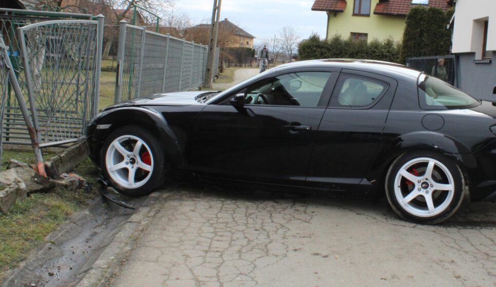 Zamiast zatrzymać się, kierowca mazdy znacznie przyspieszył i rozpoczął niebezpieczną ucieczkę. Pędząc ulicami Łęk, wielokrotnie przekraczał dozwoloną prędkość, wyprzedzał na podwójnej ciągłej i ignorował wszelkie przepisy ruchu drogowego. Jego szaleńcza jazda zakończyła się jednak po wykonaniu gwałtownego skrętu w boczną uliczkę, gdzie stracił panowanie nad pojazdem i uderzył w ogrodzenie prywatnej posesji.