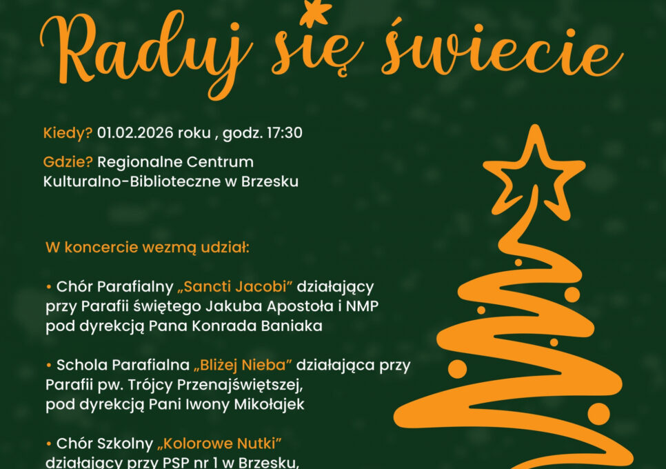 W niedzielę 1 lutego w Miejskim Ośrodku Kultury odbędzie się charytatywny koncert kolęd i pastorałek „Raduj się, świecie”, poświęcony babciom i dziadkom. Wydarzenie organizuje Stowarzyszenie „Rodzice Dzieciom” w ramach akcji „Nadajmy Szkole Kolory”.