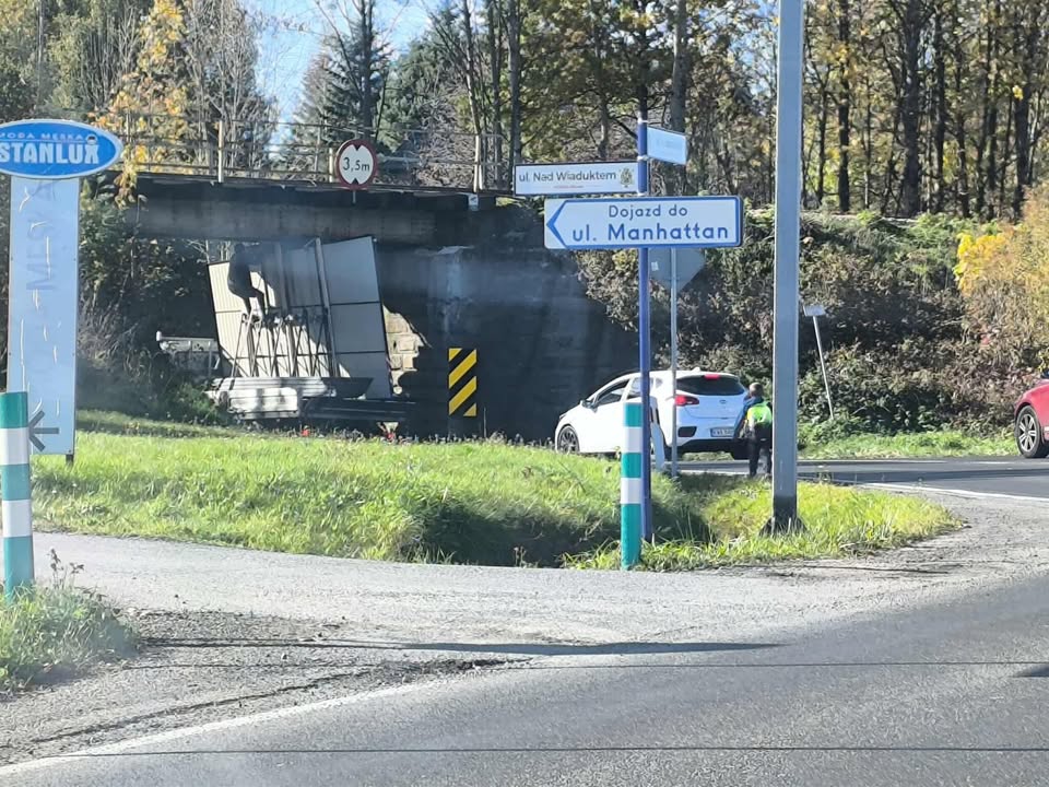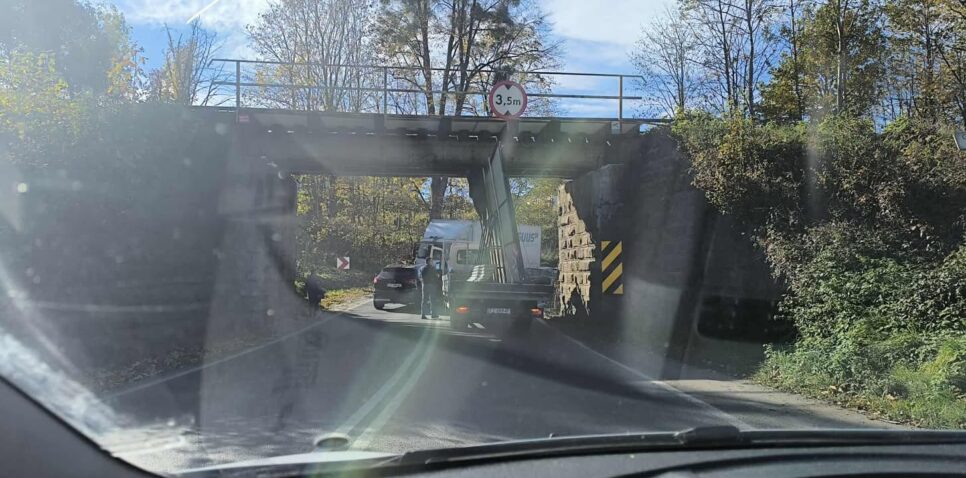 W czwartek (23.10) około godziny 13:10 w miejscowości Klecza Dolna (gmina Wadowice) ciężarówka utknęła pod wiaduktem kolejowym i zablokowała pas Drogi Krajowej nr 52 w kierunku Wadowic