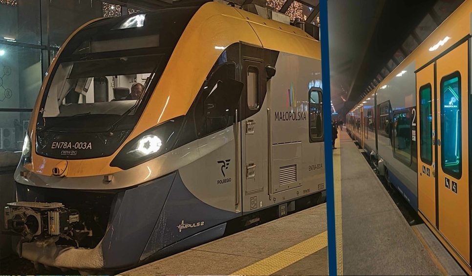 przewoźnik POLREGIO na ostatni kurs „34613 Wanda” z Krakowa do Bielska-Białej wysłał w sobotę (9.12) jeden z najnowszych pojazdów należących do Urzędu Marszałkowskiego Województwa Małopolskiego w Krakowie, tj. Impulsa EN78A polskiego producenta NEWAG S.A.
