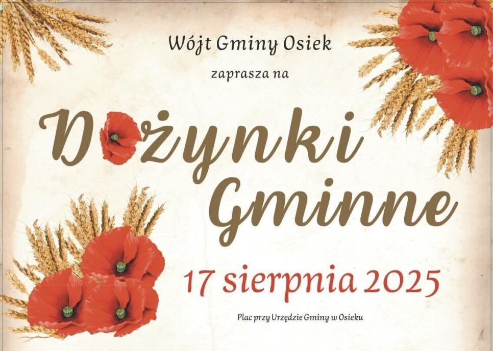 W Osieku trwają przygotowania do najważniejszego wydarzenia tego lata – Dożynek Gminnych. Choć poranek rozpoczął się tradycyjnie od objazdu Orkiestry Dętej, to główna część uroczystości dopiero przed nami. O godzinie 14:00 na placu przy Urzędzie Gminy odprawiona zostanie polowa Msza Święta, która wprowadzi uczestników w świąteczny nastrój i nada obchodom podniosłego charakteru.