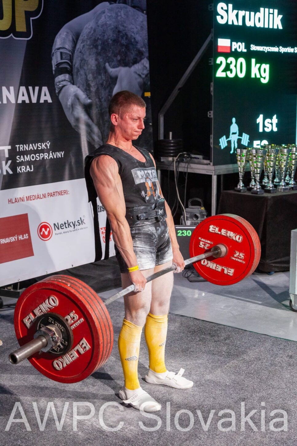 Szymon Skrudlik, rywalizujący wśród mężczyzn, podniósł 230 kg i zajął 4. miejsce na 6 startujących. Pokazał solidne przygotowanie techniczne oraz siłowe, które pozwala mu konkurować na wysokim poziomie.