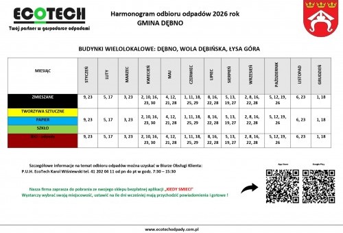 Harmonogram można odnaleźć w siedzibie urzędu oraz w materiałach informacyjnych gminy. W razie pytań prosimy o kontakt z Urzędem Gminy Dębno.