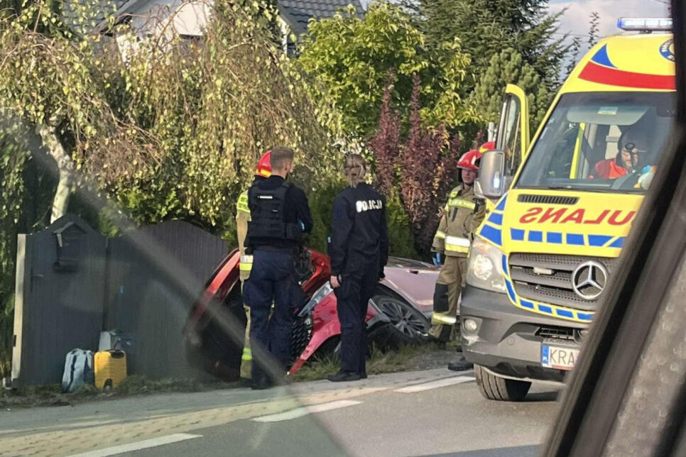 Do zdarzenia doszło w piątek, 3 października, około godziny 16:00 w miejscowości Zelczyna (gmina Skawina). Samochód osobowy zjechał z jezdni i wpadł do przydrożnego rowu. Kierowca nie odniósł obrażeń i nie wymagał pomocy medycznej. Na miejscu pracuje policja, straż pożarna, medycy oraz służby drogowe, które zabezpieczają teren i kierują ruchem.