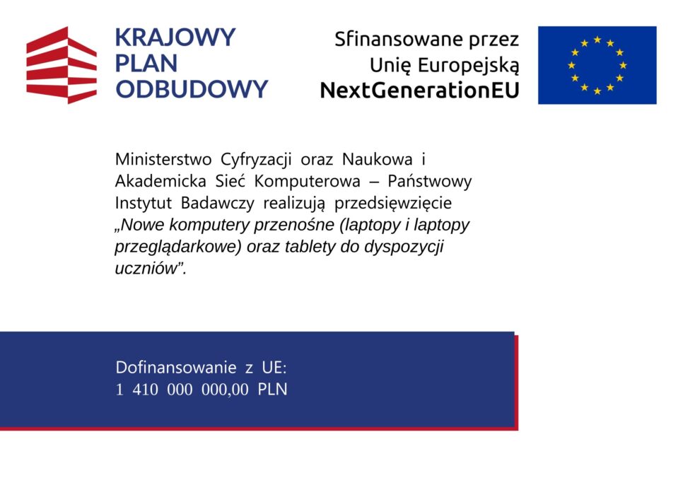 Ministerstwo Cyfryzacji we współpracy z Ministerstwem Edukacji Narodowej realizuje projekt w ramach Krajowego Planu Odbudowy i Zwiększania Odporności (KPO) — działanie C2.1.2. Program obejmuje wskaźnik C15G, którego celem jest dostarczenie uczniom przenośnych urządzeń multimedialnych, takich jak laptopy, laptopy przeglądarkowe i tablety.