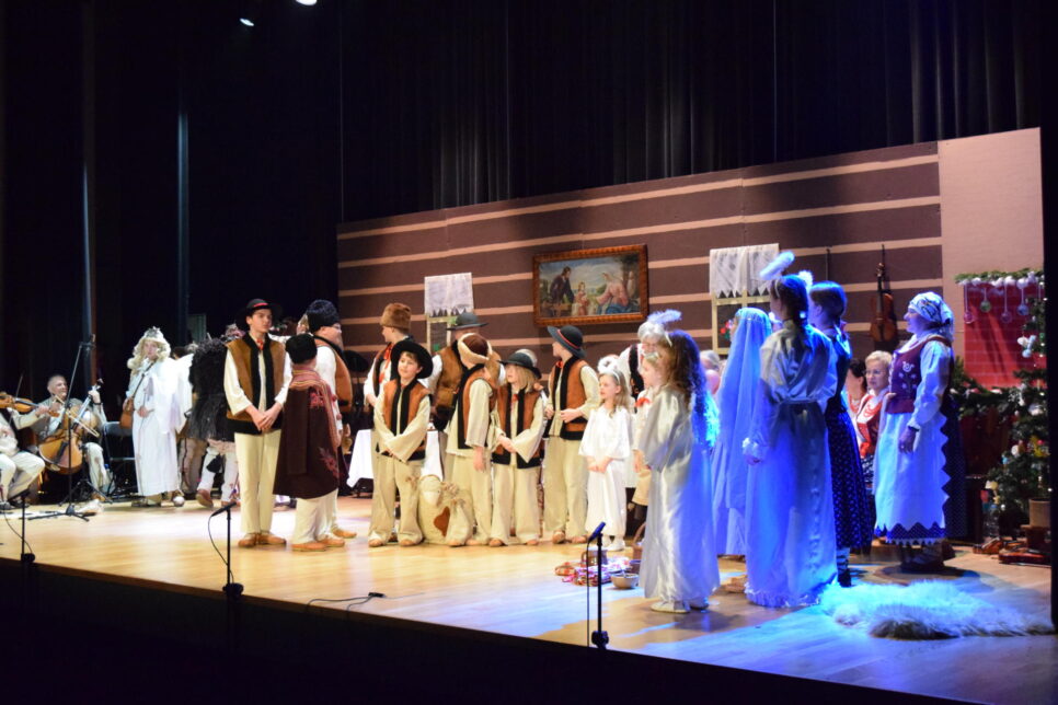 Wyjątkowy klimat wydarzenia podkreślała scenografia, która przenosiła widzów w czasy dawnych góralskich wieczorów przy wspólnym muzykowaniu. Drewniane belki, stylizowane wnętrze chaty i ciepłe światło stworzyły atmosferę autentycznego spotkania w gronie bliskich. Publiczność mogła poczuć się jak goście zaproszeni na kolędowanie, w którym każdy utwór niósł ze sobą nie tylko piękno melodii, ale i głębokie emocje.