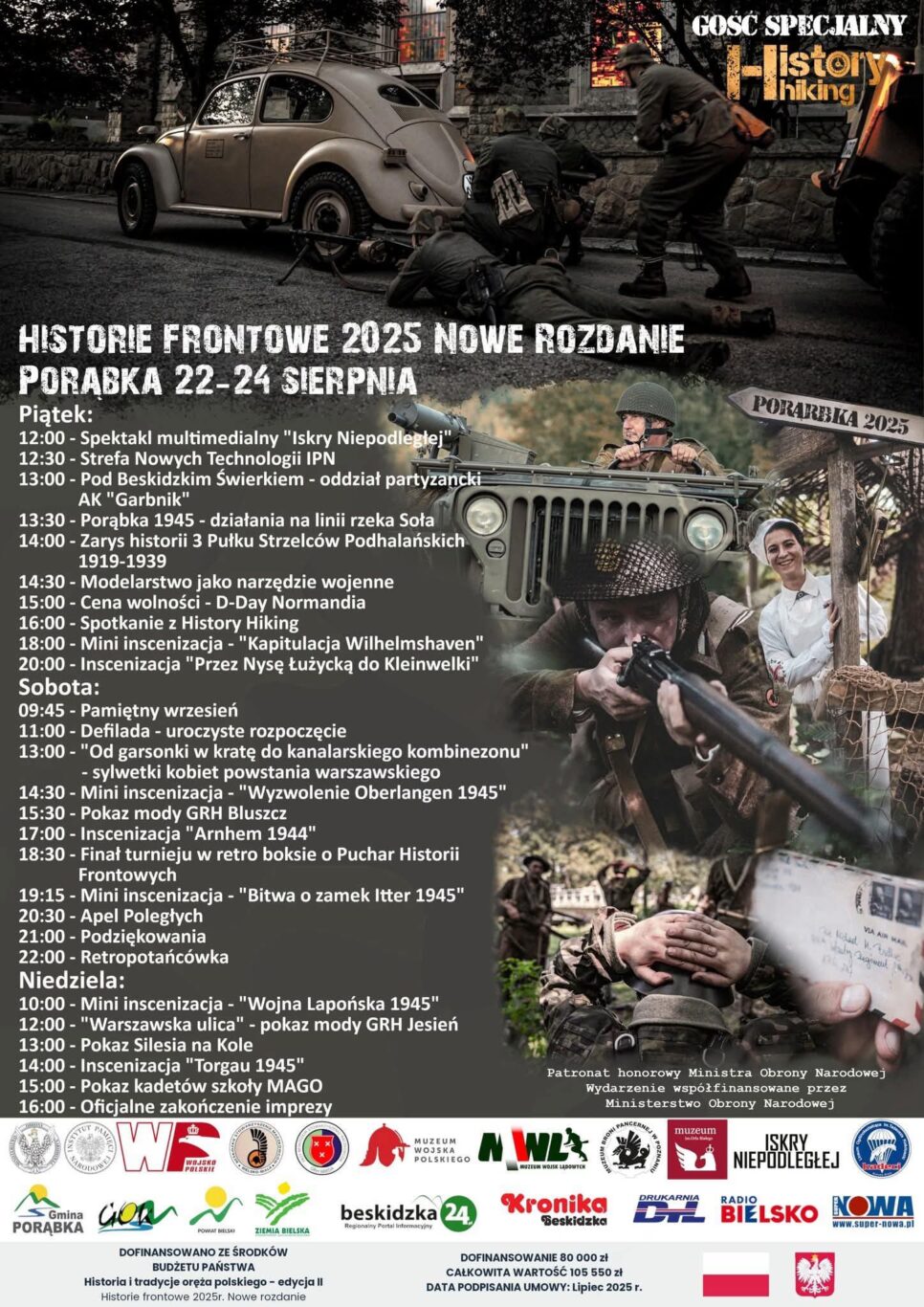 W programie zaplanowano rekonstrukcje bitew i pokazy grup rekonstrukcyjnych, a także wystawy militariów oraz sprzętu z dawnych lat. Nie zabraknie też spotkań z pasjonatami historii, którzy opowiedzą o bohaterach sprzed lat i ich niezwykłych losach. Całość dopełnią koncerty, tworząc wyjątkową atmosferę, w której pamięć o przeszłości łączy się z dobrą zabawą.