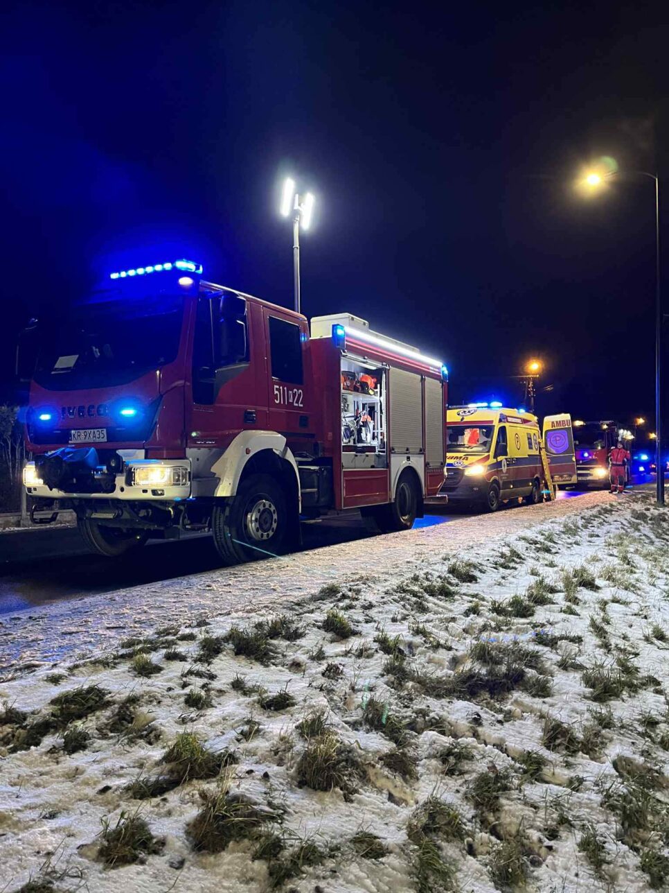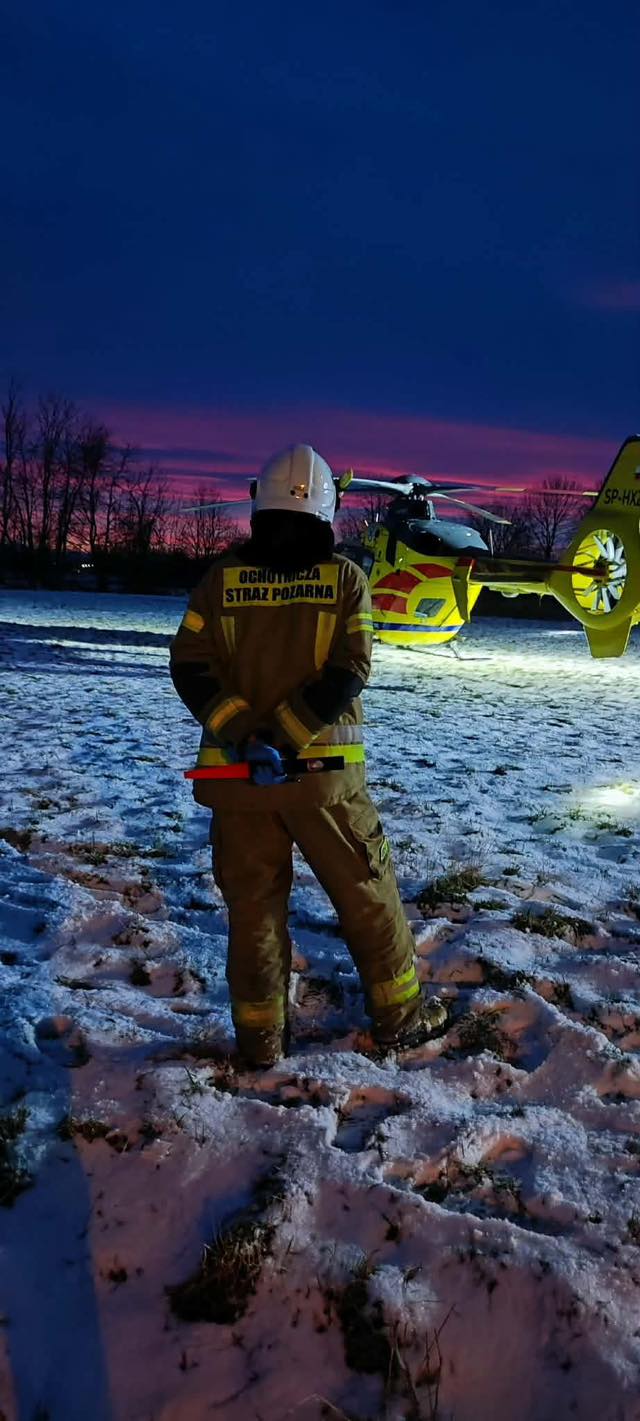 Strażacy zabezpieczyli teren i wsparli ratowników w prowadzeniu akcji. Wszystko działo się w sąsiedztwie zabudowań, co wymagało sprawnej koordynacji i spokojnych, przemyślanych działań. Poszkodowany został przekazany załodze śmigłowca i przetransportowany do specjalistycznego szpitala. Okoliczności zdarzenia będą wyjaśniane, jednak służby ponownie przypominają, że nawet pozornie niewinne urządzenia, jak hulajnogi, mogą stwarzać poważne zagrożenie, zwłaszcza przy braku kasku i odpowiedniej ostrożności.