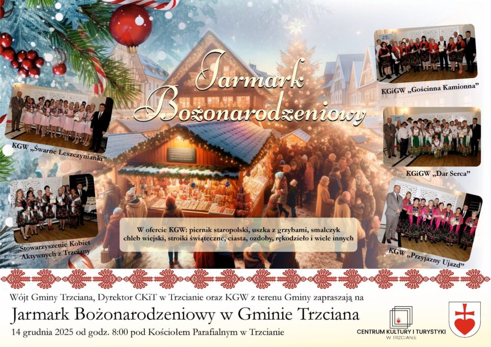 Organizatorzy zapraszają mieszkańców i gości na świąteczny kiermasz, który odbędzie się 14 grudnia w Trzcianie. To okazja, by poczuć świąteczną atmosferę i wspólnie rozpocząć przygotowania do Bożego Narodzenia.