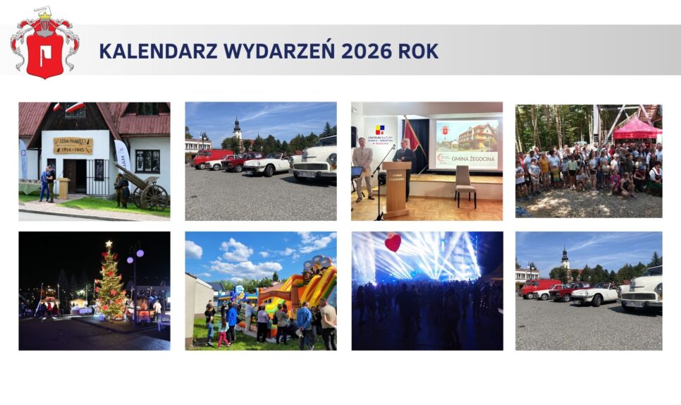 Zapraszamy do zapoznania się z planowanymi wydarzeniami w naszej gminie na 2026 rok. W programie znajdują się liczne imprezy kulturalne, sportowe, rozrywkowe oraz uroczystości o charakterze patriotycznym — coś dla każdego, kto chce aktywnie i przyjemnie spędzić wolny czas.