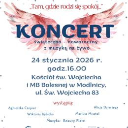 Gmina Wielka Wieś oraz Gminny Ośrodek Kultury i Sportu zapraszają na koncert świąteczno-noworoczny z muzyką na żywo zatytułowany Tam, gdzie rodzi się spokój…. Wydarzenie ma stworzyć kameralną, nastrojową przestrzeń do wspólnego przeżywania muzyki oraz refleksji na początku nowego roku.