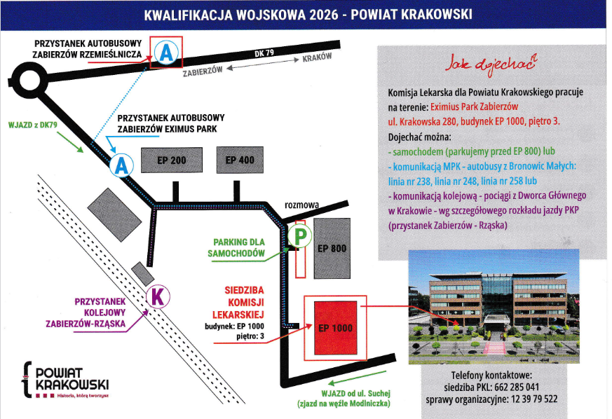 Nowe miejsce pracy komisji lekarskiej: Zabierzów, ul. Krakowska 280, EXIMIUS PARK, budynek EP 1000, 3. piętro.