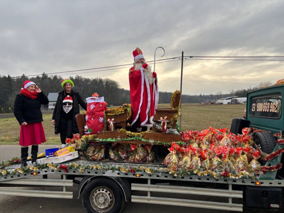 Nie zabrakło też wzruszających momentów — św. Mikołaj odwiedził seniorów z miejscowości, składając im życzenia oraz wręczając symboliczne upominki. Krótkie rozmowy i serdeczność sprawiły, że ten dzień był nie tylko świąteczny, ale i pełen życzliwości.