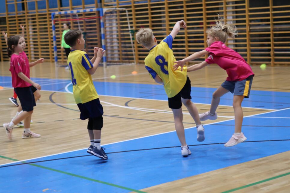 Z naszej szkoły pojawiły się dwie drużyny ZSS Roczyny, które reprezentowały placówkę pod czujnym okiem trenera Jana Kołodziejczyka. Mecze rozgrywano w systemie 4+1, a cała inicjatywa odbywała się bez klasycznego prowadzenia wyników. Liczyła się przede wszystkim radość z gry, współpraca i zdrowa rywalizacja, pozbawiona presji o końcowy rezultat.