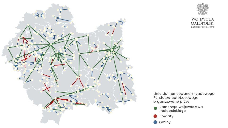 Minister Infrastruktury przychylił się do prośby wojewody małopolskiego Krzysztofa Jana Klęczara o zwiększenie puli środków z Funduszu rozwoju przewozów autobusowych. Dzięki dodatkowym środkom rządowym samorząd województwa będzie mógł w pełni zrealizować swój wniosek, obejmujący uruchomienie 75 nowych linii o łącznej długości przekraczającej 3 tys. km.