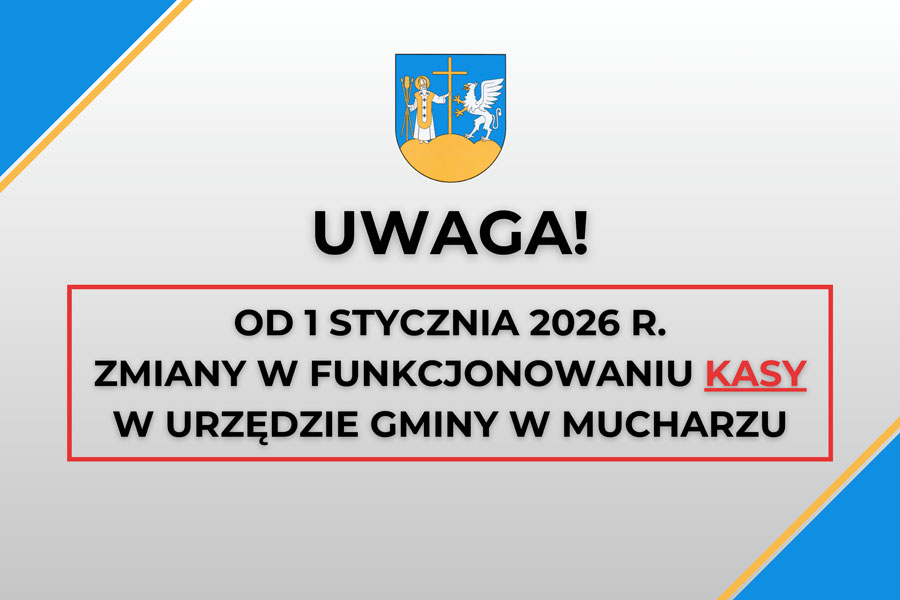 Urząd Gminy w Mucharzu informuje o zmianach organizacyjnych dotyczących obsługi płatności w kasie. Modyfikacji ulegają zarówno dni, jak i godziny funkcjonowania punktu kasowego.