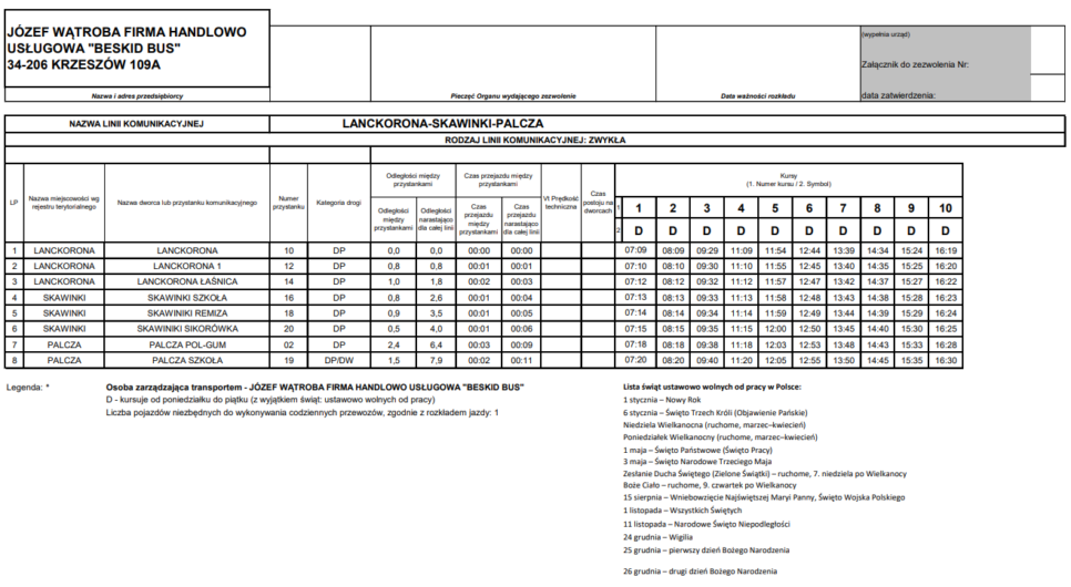 Najważniejszą zmianą jest uruchomienie nowej linii Kalwaria Zebrzydowska – Lanckorona – Jastrzębia – Izdebnik – Sułkowice. To trasa przygotowana z myślą o dojazdach do pracy, szkół i usług. Połączenie powstało we współpracy kilku samorządów i dzięki wsparciu z Funduszu Rozwoju Przewozów Autobusowych.