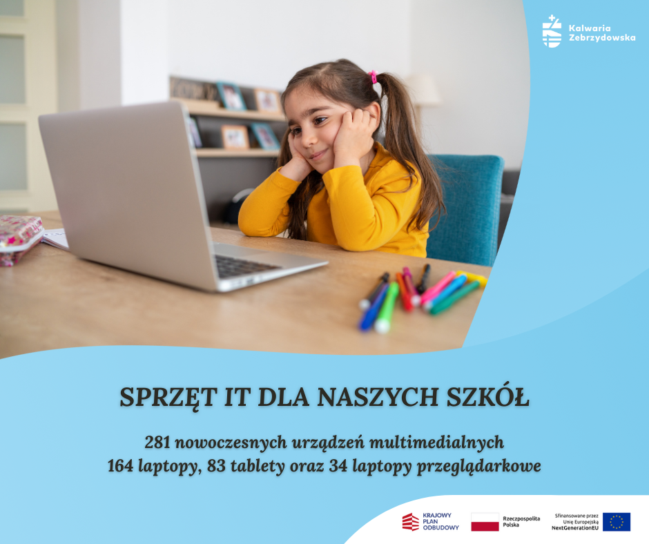 Szkoły w Gminie Kalwaria Zebrzydowska zostały wyposażone w nowoczesny sprzęt komputerowy w ramach ogólnopolskiego programu „Wyrównanie poziomu wyposażenia szkół w przenośne urządzenia multimedialne”, finansowanego z Krajowego Planu Odbudowy i Zwiększania Odporności (KPO). To jedno z największych przedsięwzięć cyfryzacyjnych w polskiej oświacie, którego celem jest wyrównanie szans edukacyjnych poprzez zapewnienie uczniom i nauczycielom dostępu do nowoczesnych technologii.