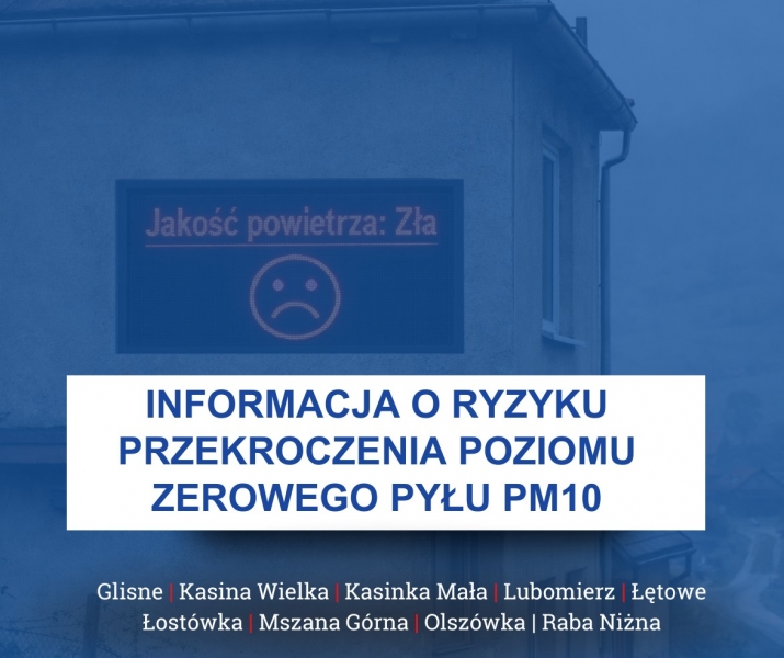 W komunikacie wydanym 10 stycznia 2026 r. Urząd Marszałkowski Województwa Małopolskiego poinformował o możliwościach przekroczenia dobowej normy PM10 (50 µg/m³) na terenie powiatu limanowskiego. Jako główne czynniki wpływające na podwyższone stężenia wskazano: