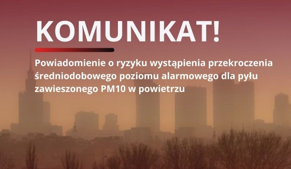 Występuje zagrożenie przekroczenia średniodobowego progu informowania dla pyłu zawieszonego PM10, ustalonego na poziomie 100 μg/m3.