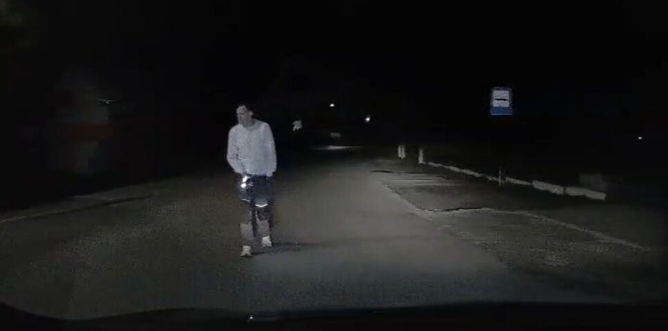 Nietypowe i niepokojące zdarzenie miało miejsce w niedzielę 28 września w Sułkowicach Bolęcinie (gmina Andrychów). Około godziny 21:40 jeden z kierowców zarejestrował mężczyznę, który chwiejnym krokiem wszedł na jezdnię i zaczął blokować przejazd aut. Jak relacjonuje nasz czytelnik, w ręku miał latarkę, którą machał w stronę nadjeżdżających pojazdów. „Nie wiedziałem, co ten facet zrobi i o co mu chodzi. Sprawiał wrażenie nietrzeźwego, jego ruchy były niepewne” – przekazał autor nagrania.