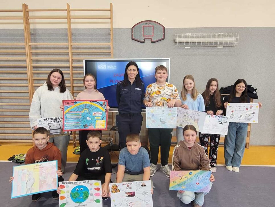 Komenda Powiatowa Policji w Miechowie ponownie wzięła udział w akcjach związanych z bezpieczeństwem w internecie. 18 lutego funkcjonariuszka z Wydziału Prewencji odwiedziła uczniów oraz wychowawców Szkoły Podstawowej nr 1 w Kozłowie, przeprowadzając zajęcia profilaktyczne oraz podsumowując szkolny konkurs plastyczny poświęcony tej tematyce.