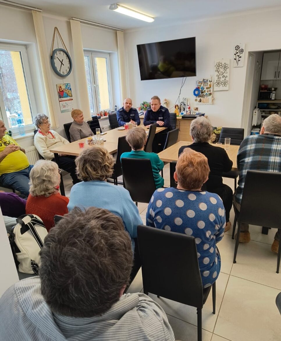 Szczególny nacisk położono na zagrożenia związane z oszustwami, którym często padają osoby starsze. Funkcjonariusze omówili typowe metody działania przestępców, w tym tzw. metodę „na policjanta”, kiedy sprawcy podszywają się pod funkcjonariuszy, by wzbudzić strach i nakłonić do przekazania pieniędzy lub kosztowności. Seniorzy zostali zachęceni do ostrożności, unikania pochopnych decyzji oraz do natychmiastowego kontaktu z Policją w przypadku wątpliwości.