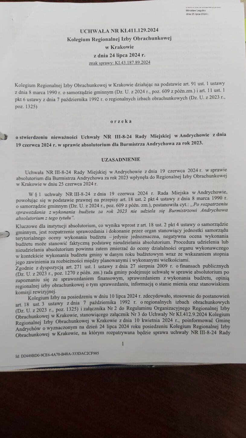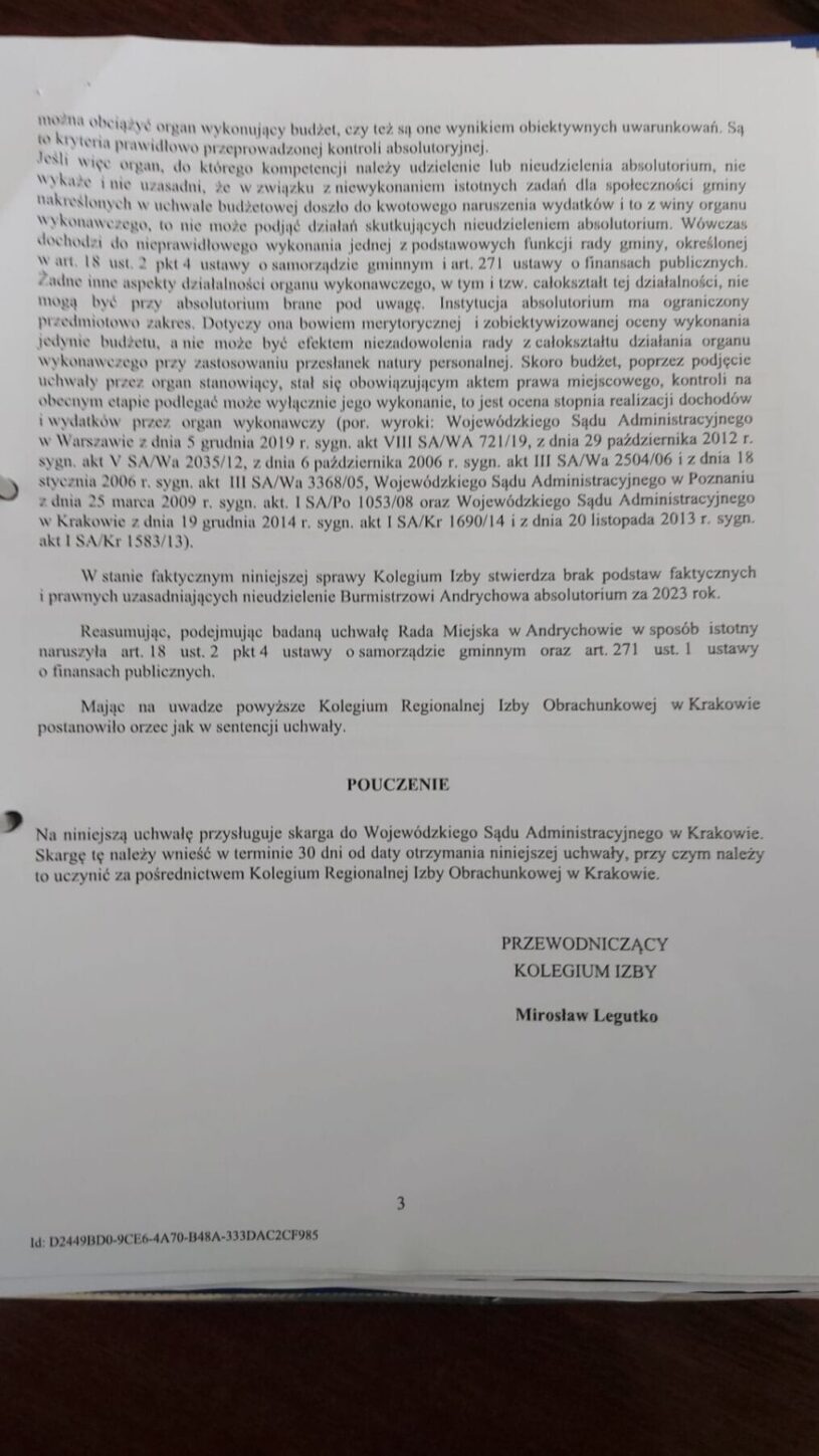 Co ciekawe, w obu przypadkach – i w 2024, i w 2025 roku – Regionalna Izba Obrachunkowa uchyliła uchwały o nieudzieleniu absolutorium, wskazując na ich niewystarczające uzasadnienie. W ubiegłym roku nikt się tym przesadnie nie przejął. Ówczesny Przewodniczący Maciej Kobielus nie pojechał na rozprawę do Regionalnej Izby Obrachunkowej, ale nikt w mediach o tym nie informował. Dziś ta sama sytuacja wywołuje protesty i medialne komentarze.