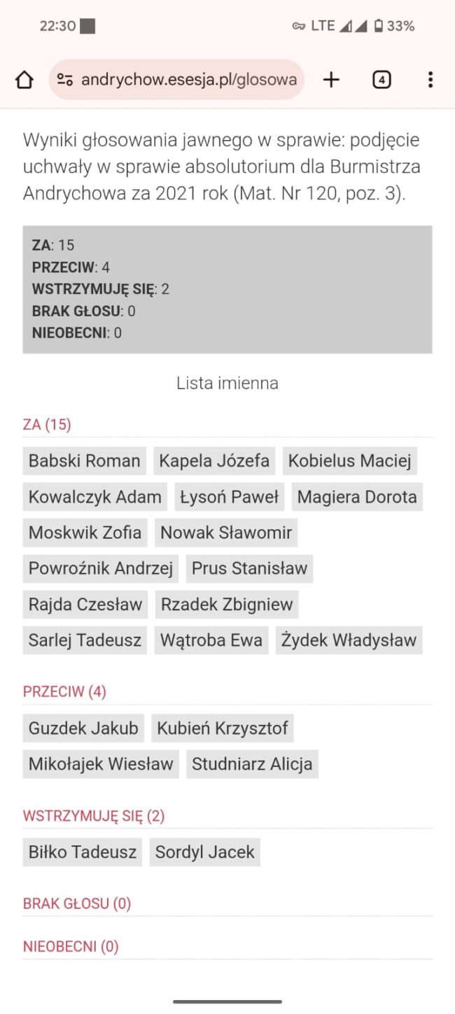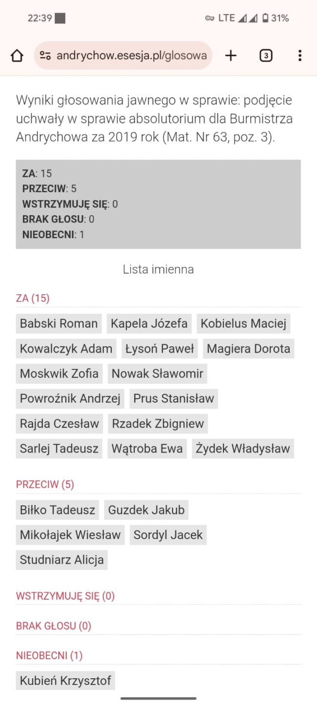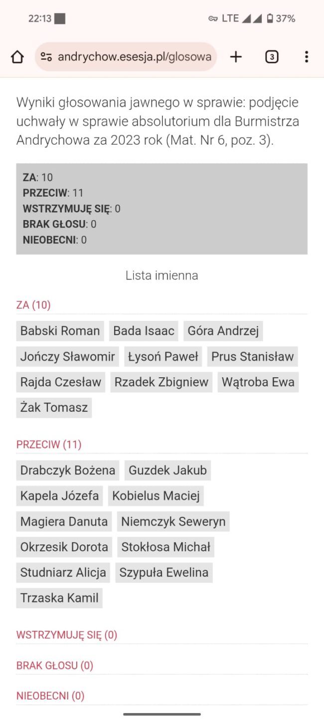 Wówczas radny Kobielus nie nawoływał do spójności działań i szacunku wobec organów nadzoru. Cóż – być może uznał, że sytuacja wyglądała zupełnie inaczej. Choć z dzisiejszej perspektywy trudno dostrzec wyraźną różnicę. Nie jest w tym zresztą odosobniony. Radny Jakub Guzdek, również krytykujący tegoroczne głosowanie, przez ostatnie lata sam wielokrotnie głosował przeciwko absolutorium – bez medialnych wystąpień czy dramatycznych apeli. Wtedy nie było mowy o politycznych atakach, a decyzje przyjmowano raczej ze spokojem. Dziś ten sam mechanizm budzi wielkie emocje.