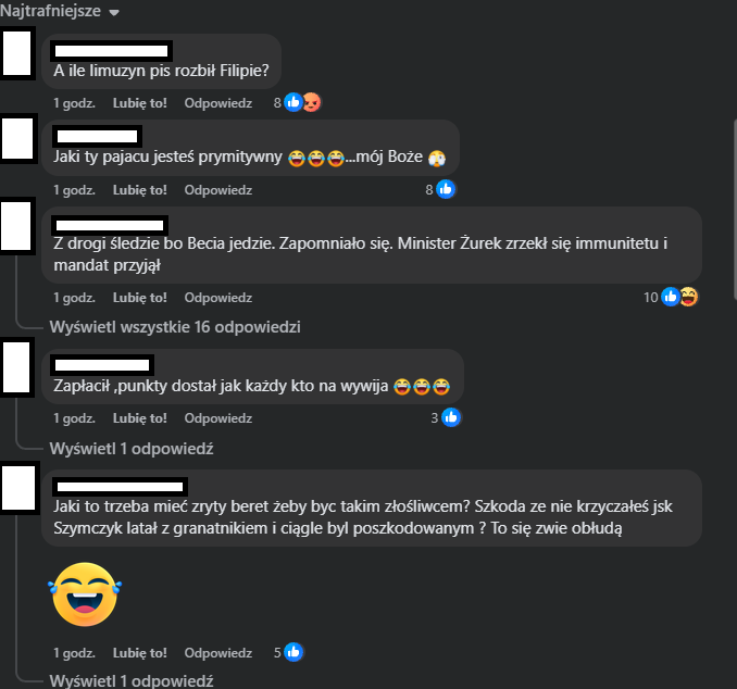 Pod postem szybko pojawiły się dziesiątki komentarzy, w których internauci zarzucali posłowi manipulację, niski poziom przekazu i próbę zbicia politycznego kapitału na niepełnej informacji. Część wpisów miała charakter ironiczny, inne były wprost krytyczne i emocjonalne, ale wspólnym mianownikiem była ocena, że publikacja nie przystoi osobie pełniącej mandat posła. Zamiast punktować przeciwnika politycznego, Kaczyński stał się adresatem ostrych uwag, a jego wpis – symbolem nieudanej próby politycznego szyderstwa.