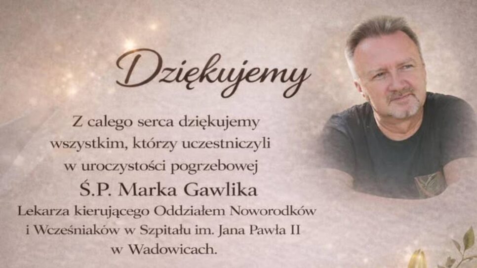 Zmarły lekarz został wspomniany nie tylko jako doświadczony specjalista, ale również jako przyjaciel, szef i autorytet, który przez lata wyznaczał standardy pracy oraz relacji międzyludzkich. Kończące oświadczenie słowa o tym, że zmarli pozostają żywi w pamięci tych, którzy ich znali, oddają atmosferę zadumy i szacunku, jaka towarzyszyła pożegnaniu dr. Marka Gawlika.