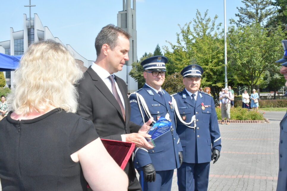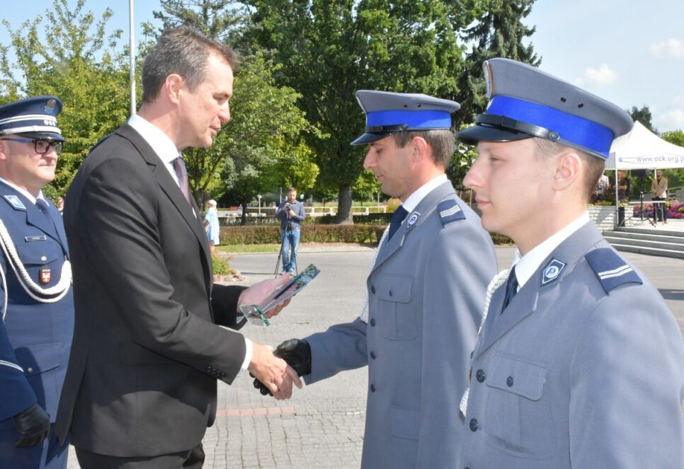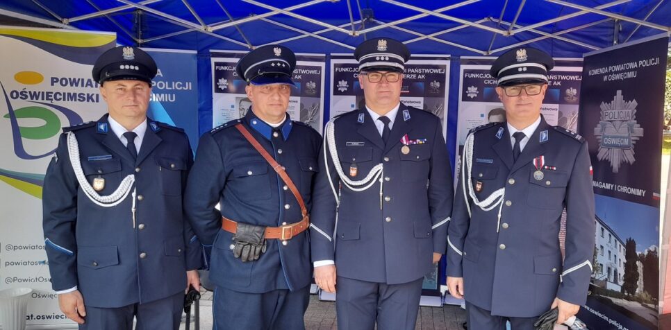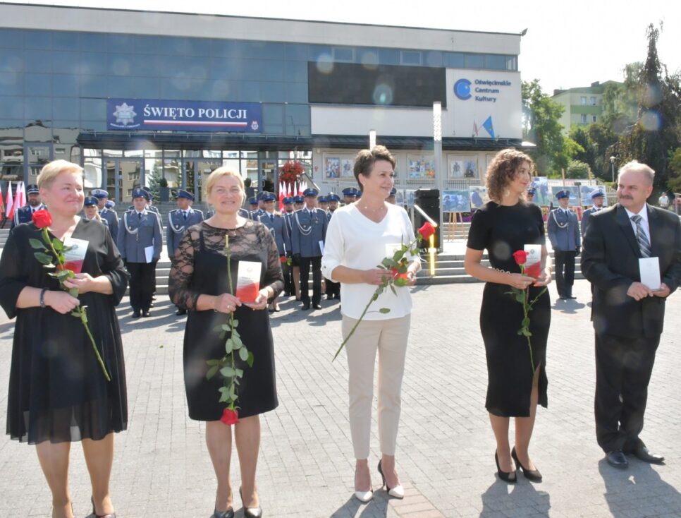 Podziękowania za wieloletnie wsparcie oraz współpracę z oświęcimską Policją z rąk Komendanta Powiatowego Policji w Oświęcimiu oraz młodszego inspektora Pawła Ślęczkowskiego I Zastępcy Komendanta Powiatowego Policji w Oświęcimiu odebrali pan Jerzy Mieszczak, członek Zarządu Powiatu Oświęcimskiego, pan Jacek StochDyrektor Powiatowego Zespołu Nr 2 Szkół Ogólnokształcących Mistrzostwa Sportowego i Technicznych w Oświęcimiu oraz nadkomisarz w stanie spoczynku Zbigniew Pszczeliński, który wiele lat przepracował w oświęcimskiej komendzie Policji, a także byłKomendantem Komisariatu Policji w Brzeszczach.