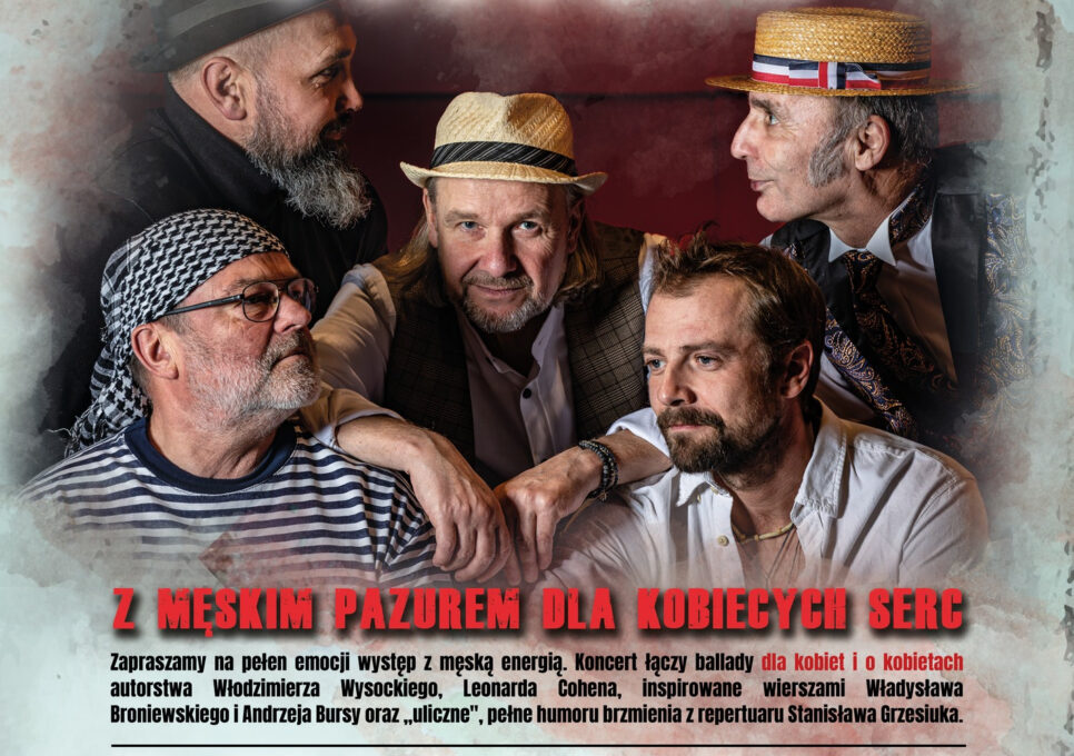 Miejski Ośrodek Kultury zaprasza na koncert zespołu Projekt Volodia, który przygotował program łączący ballady o kobietach i dla kobiet autorstwa Włodzimierza Wysockiego oraz Leonarda Cohena, a także utwory inspirowane wierszami Władysława Broniewskiego i Andrzeja Bursy. W repertuarze nie zabraknie też ulicznego, pełnego humoru materiału w klimacie Stanisława Grzesiuka.