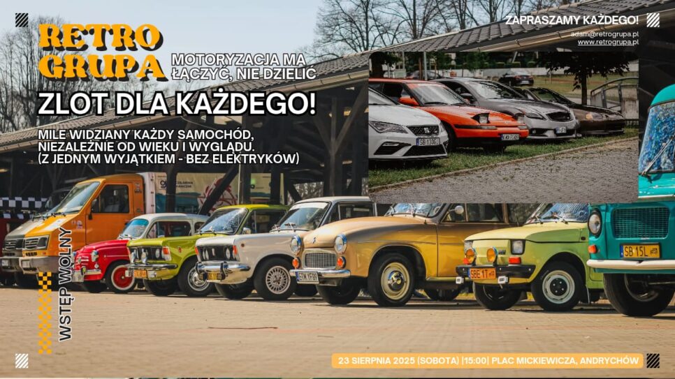 Start wydarzenia zaplanowano na godzinę 15:00. Wstęp jest wolny, dlatego każdy, kto kocha motoryzację, może śmiało pojawić się na Placu Mickiewicza w Andrychowie i stać się częścią tego wyjątkowego spotkania.