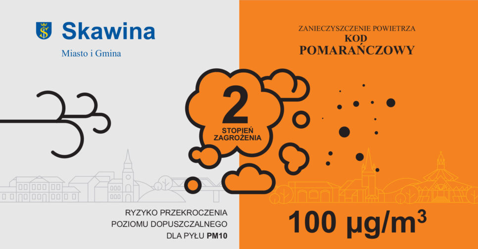Komunikat o możliwości przekroczenia średniodobowego poziomu informowania 100 µg/m³ dla pyłu zawieszonego PM10. Ostrzeżenie obowiązuje w dniu 22.01.2026 r.