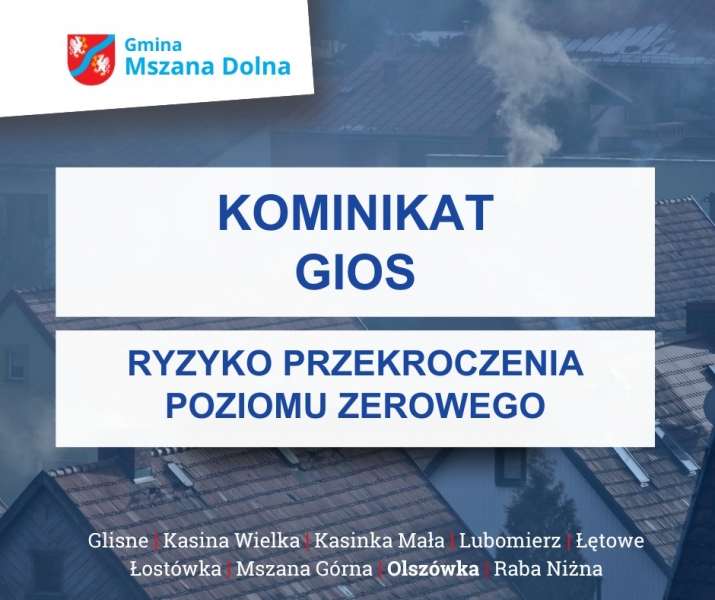 Główny Inspektorat Ochrony Środowiska informuje, że 19 stycznia 2026 r. na terenie powiatu limanowskiego może dojść do przekroczenia średniodobowego dopuszczalnego stężenia pyłu zawieszonego PM10.