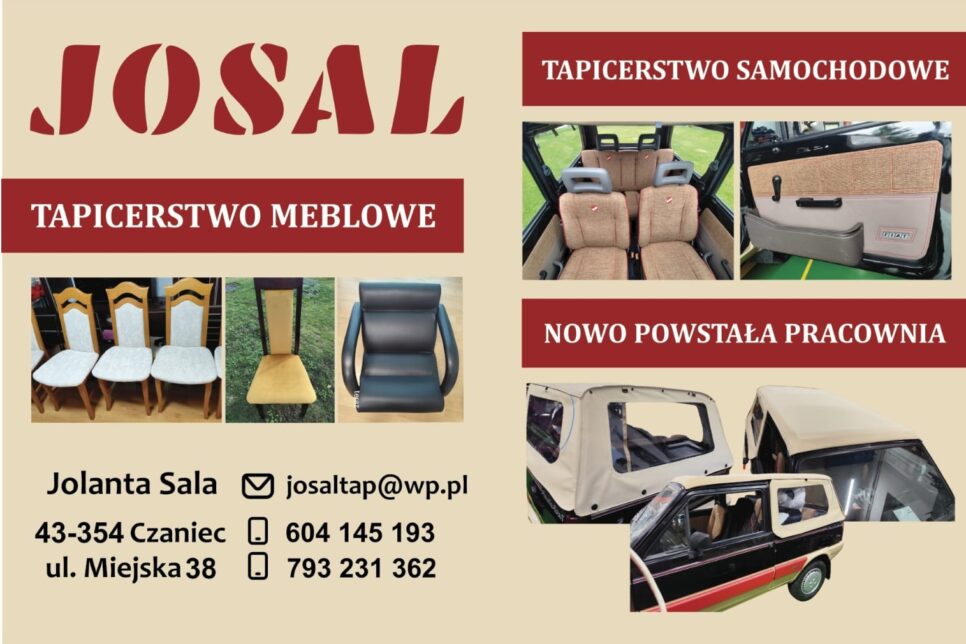 W sercu Czańca powstała pracownia, która łączy tradycję rzemiosła z nowoczesnym podejściem do renowacji i projektowania. JOSAL to firma prowadzona przez Jolantę Sala, specjalizująca się w tapicerstwie meblowym i samochodowym. Nowo otwarta pracownia przy ul. Miejskiej 38 już teraz przyciąga klientów z całego regionu, oferując szeroki wachlarz usług – od odświeżenia starych krzeseł czy foteli, […]