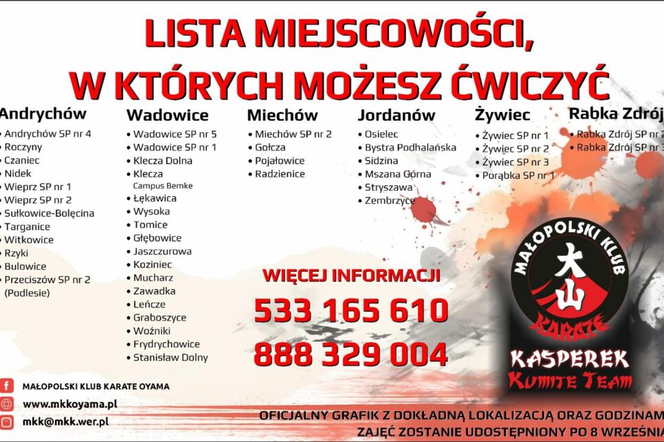 Małopolski Klub Karate Oyama ogłosił start nowego sezonu treningowego. Klub prowadzi zajęcia już w blisko 50 miejscowościach w Małopolsce i na Śląsku, dzięki czemu zarówno dzieci, młodzież, jak i dorośli mogą znaleźć sekcję blisko swojego miejsca zamieszkania. Organizatorzy podkreślają, że pierwszy trening jest bezpłatny, co daje możliwość sprawdzenia swoich sił i poznania atmosfery zajęć.