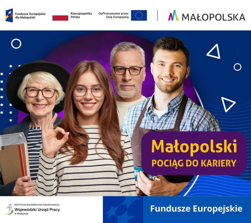 Spotkanie poprowadzą przedstawiciele Wojewódzkiego Urzędu Pracy w Krakowie. „Małopolski pociąg do kariery – sezon 1” oraz „Pracownicy – najlepsza inwestycja dla firmy 2.0” są realizowane przez Wojewódzki Urząd Pracy w Krakowie i współfinansowane przez Unię Europejską ze środków Europejskiego Funduszu Społecznego Plus.