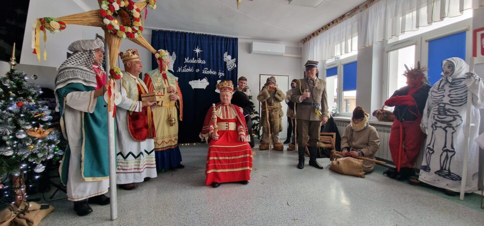 Spotkanie urozmaiciła grupa kolędnicza „Radgowski Orszak”, prezentując zabawne scenki, które wywołały wiele uśmiechów. Oprawę muzyczną i wspólne kolędowanie poprowadził Adam Dudek, któremu organizatorzy wyrazili szczególne podziękowania.