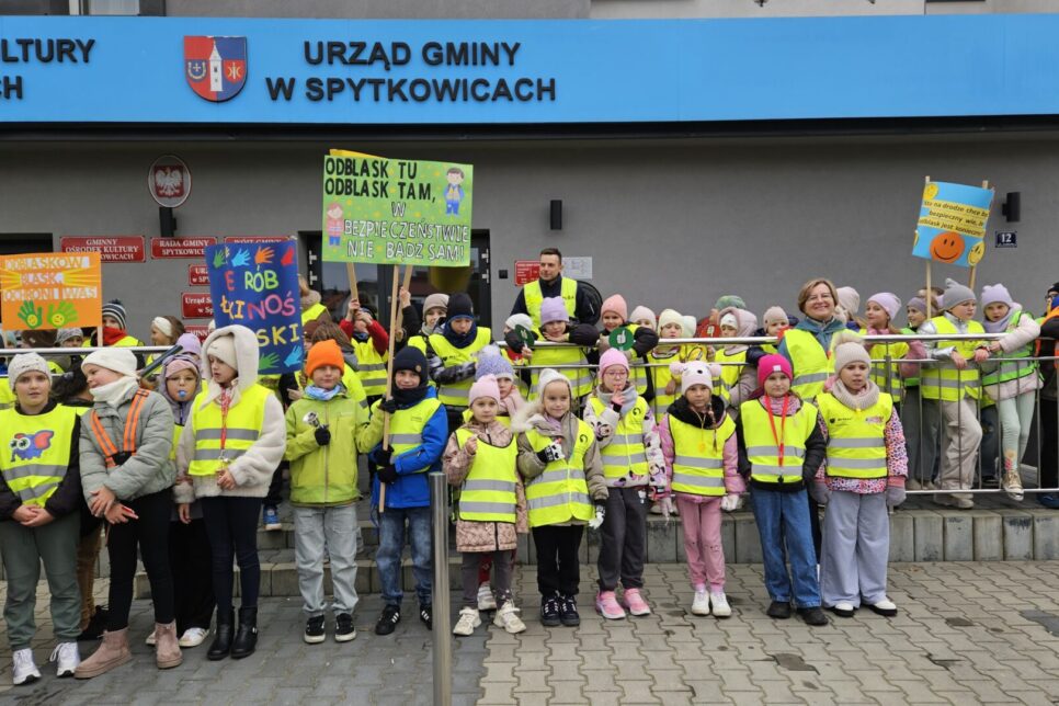 21 października br. uczniowie Zespołu Szkolno-Przedszkolnego w Spytkowicach zorganizowali barwny happening promujący noszenie odblasków. Wydarzenie odbyło się w ramach ogólnopolskiej akcji „Odblaskowa Szkoła”, której celem jest zwiększenie bezpieczeństwa dzieci i młodzieży w drodze do szkoły. Podczas happeningu uczniowie ubrani w kamizelki odblaskowe maszerowali ulicami Spytkowic, niosąc transparenty i plakaty z hasłami zachęcającymi do bycia widocznym